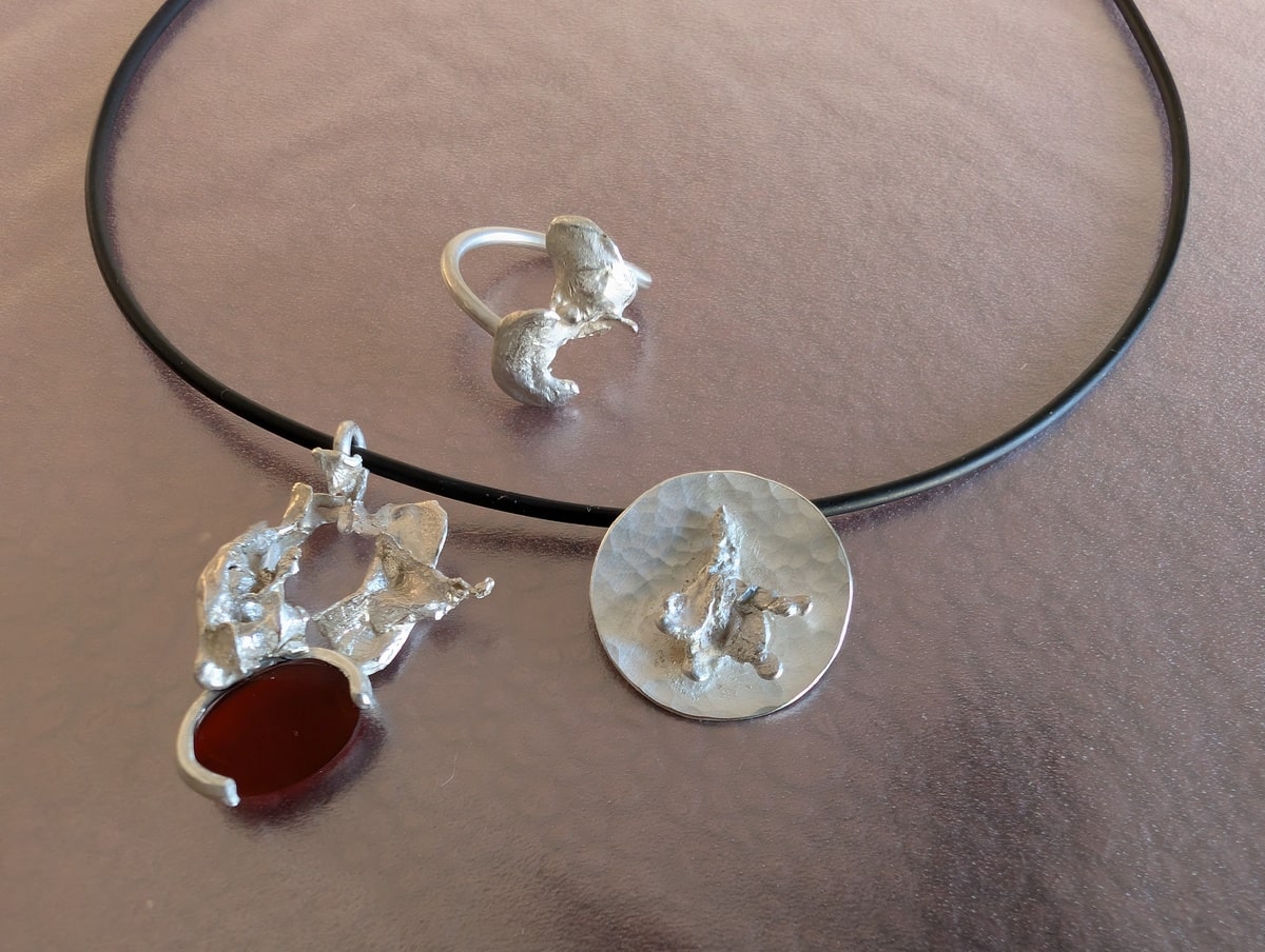 These unique silver rings and pendants are born from an experimental casting process where molten silver is poured into a lake or water-filled mold, capturing nature’s spontaneous forms. Each cooling pattern creates a one-of-a-kind structure — from smooth, rounded rings to sculptural pendants with gemstone inlays. Every piece reflects the raw beauty of silver shaped by fire and water, making it an exclusive handcrafted work of art.
